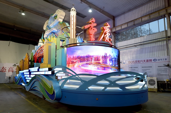 此次参加国庆彩车游行的重庆彩车由重庆日报报业集团、 、迪马工业公司以及庆铃集团合作完成, 牵头彩车上装彩饰部分创意设计、彩饰制作、视频制作等任务。