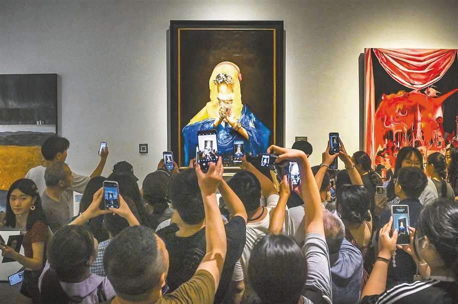 6月19日上午,天气阴沉,空气中裹挟着热浪,但 美术馆前仍然排起数百米长队。步入偌大的展厅,里面早已人山人海,人头攒动。在《祷》《木糖纯》《一百个人的孤独》《叠愿》等爆火作品前,人们纷纷举起手机,打卡拍照。
