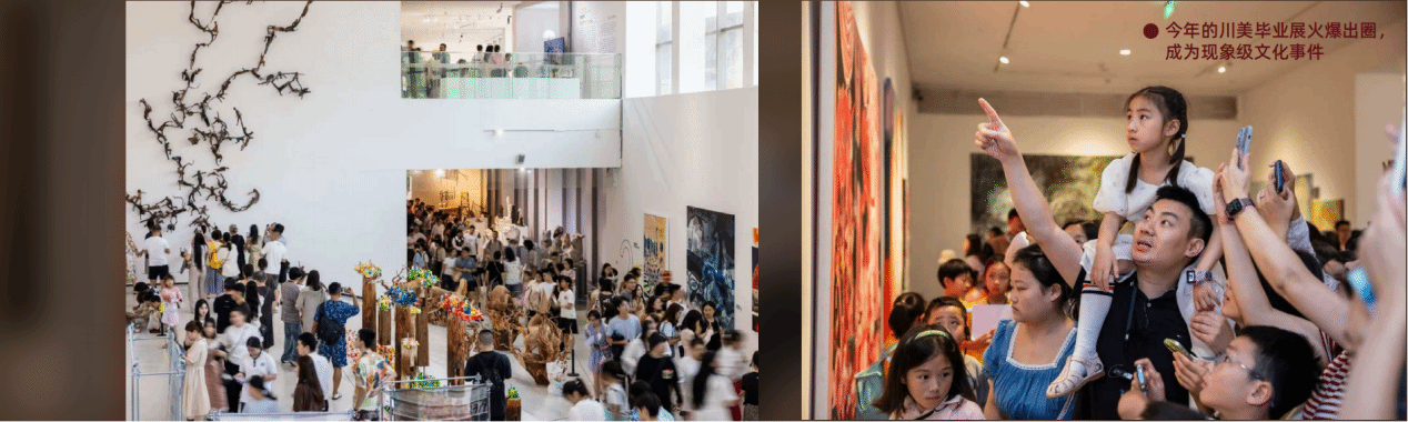 刚刚结束的川美“开放的六月”毕业展,共迎来了75万人次的观展,单日最高进馆人数3.2万人,公众号预约单日打开次数超34万次,新华社、中央电视台、人民日报、光明日报、中国日报、中国青年报等央媒及30余家省市主流媒体进行了广泛而深入的报道,China Daily、国际在线等国际传播平台通过Facebook、Twitter等海外平台向国际传播,引发广泛关注,全网相关话题讨论量超10亿人次,成为现象级的文化事件。超万件作品与川美85年波澜壮阔的岁月不期而遇,不仅呈现了1500余名同学的艺术创新力与技艺融合的现代表达,还迎来一波艺术教育、艺术创作面向大众的破圈式共情。正是你们,2025届的全体毕业生,以自己的勤奋、天赋和努力,赢得了属于你们的荣誉。艺术以它直指人心的力量,可以触动青年的思想,激发公众的讨论,汇聚大众的共情,凝聚社会的共识,成为时代的注脚。我们所热爱的艺术,始终以“各美其美,美美与共”的博大,在个体心灵与时代精神之间,架设起对话互通的桥梁,让每个平凡的生命,都能在艺术的滋养中,找寻到属于自己的诗意栖居。