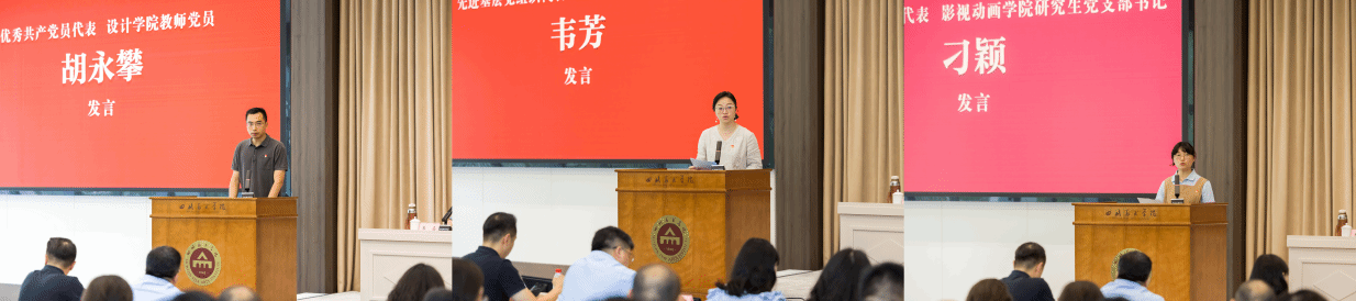 段胜峰宣读了《中共 委员会关于表彰优秀共产党员、优秀党务工作者和先进基层党组织的决定》。校领导为受表彰的优秀个人和先进集体颁发了荣誉证书和奖牌。“两优一先”代表韦芳、刁颖、胡永攀三位同志在会上分别做了交流发言。
