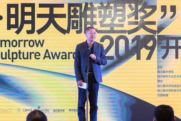 9月10日起,10位初审评委进行了紧张细致的评审工作,以不记名投票方式选出20位入围艺术家,于展览开幕当晚6:30举行了“寻找雕塑的明天——2019五粮液-明天雕塑奖艺术新星演讲秀暨颁奖典礼。5位终审评委,与现场400位学生、现场观众及线上观众一起,聆听他们的故事。在时长近5小时的活动中,经过20位(组)入围艺术家的现场演讲,终审评委评选出了2019年“明天雕塑奖”5位获奖艺术家,其中,田晓磊、有金小组、徐艺华、张移北4位青年艺术家获得了2019年“明天雕塑奖”,每位(组)获得奖金两万元人民币;褚秉超获得年度大奖,奖金十万元人民币。现场对以上获奖者进行了颁奖。