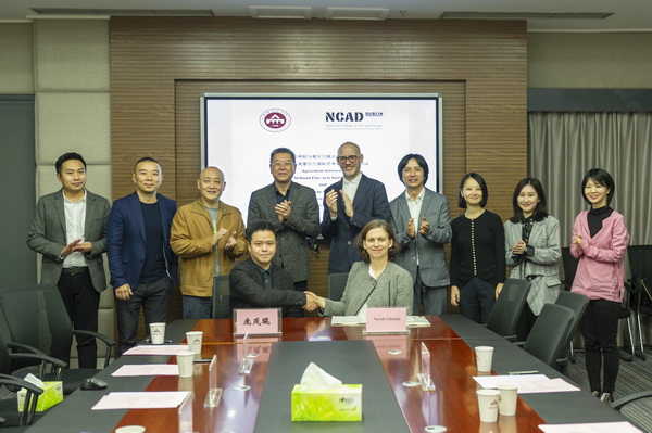 11月11日, 与爱尔兰国立艺术设计学院的中外合作办学机构项目暨 爱尔兰国际艺术设计学院签约仪式在我校举行。爱尔兰国立艺术设计学院校长莎拉-葛兰妮、设计学院院长亚里克斯-米尔顿, 党委书记黄政、校长庞茂琨、副校长张杰、副校长焦兴涛出席签约仪式,教务处处长苏永刚、国际交流合作处处长曾岳、设计学院副院长吕曦等相关人员参加了仪式。