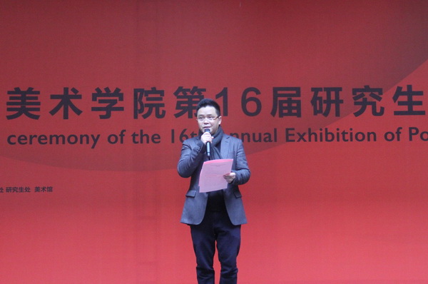 庞茂琨校长致开幕词。他指出, 研究生作品年展开办至今已有16届,已经成为川美研究生重要的学术交流平台。年展一直以推出优秀作品和人才,展现我校教学与创作互动的特点,进一步促进创作水平的提高和学术的繁荣为宗旨。学校一直鼓励和支持研究生的学术科研创作,时刻关注每一位研究生在每个学习时段内是怎样思考、怎样学习、怎样创作的。坚持每年举办研究生作品年展,可以让每位学生看到不同艺术门类、不同艺术语言之间的差异性对话,这种差异性对话不仅丰富了年展的内涵,还可以让每位研究生更好地探寻自己,提升自己。