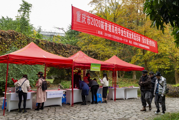 2019年11月29日,由我校承办的重庆市2020届普通高校毕业生就业双选活动(美术设计类专场)在我校虎溪校区影视动画学院篮球场举行。重庆市大学中专毕业生就业指导服务中心主任余跃,我校党委书记黄政等领导亲临现场,与用人单位和毕业生们亲切交流。此次双选会对促进重庆市美术设计类高校及我校毕业生实现更充分、更高质量就业起到了积极的推动作用,余跃主任对此次双选会高度肯定,表示将继续加大对我校此项工作的投入力度。黄政书记了解用人单位招聘需求和对学校人才培养质量的意见和建议,要求学校各二级学院要加强与用人单位的互动沟通,进一步改进教学质量,提高毕业生就业竞争力,促进毕业生优质就业。