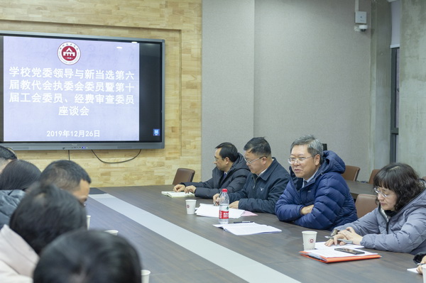 12月26日下午5点,学校党委领导同校工会新一届委员集体座谈会在三会议室举行。学校党委书记黄政,党委副书记左益,党委常委、副校长彭林权出席座谈会,校工会第六届教代会执委会委员、第十届工代会委员、经审委委员参加了座谈。