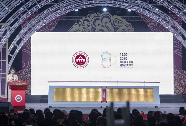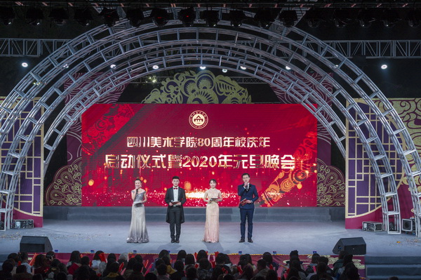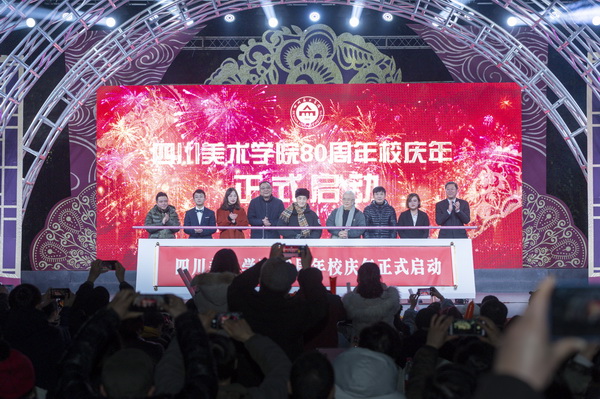 历八秩沧桑薪火相传,育九州英才谱写华章。2019年12月30日晚7点, 80周年校庆年正式启动。著名油画家、百岁老艺术家刘国枢先生,原党委书记杨圭言教授,原党委书记刘世杰教授,原副院长罗力教授,原纪委书记唐诚教授,著名油画家、油画系张方震教授,著名雕塑家、雕塑系龙德辉教授,著名版画家、重庆文史馆员康宁教授,校友代表、重庆市美术家协会秘书长魏东先生,学校党政领导黄政、庞茂琨、左益、张杰、黄云、焦兴涛、彭林权,以及师生代表出席了启动仪式。启动仪式上发布了 八十周年校庆LOGO,师生校友代表共同启动了校庆大幕,党委书记黄政致辞。
