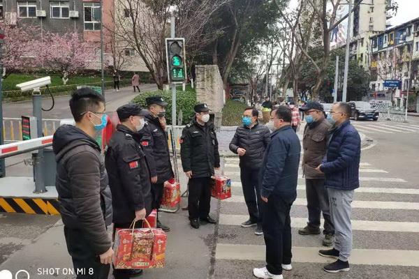 (图1:1月27日,左益副书记、彭林权副校长率队慰问物业公司门岗值班人员)
