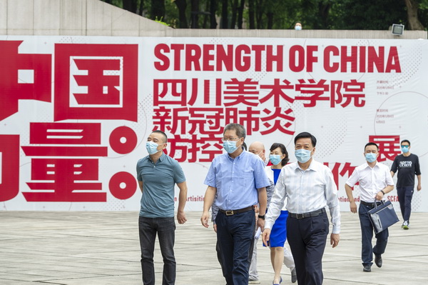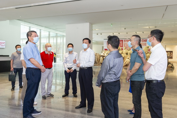 胡文容详细了解学校疫情防控、加强党建工作和探索“思政+艺术”育人模式等有关情况,参观了“中国力量”防疫主题创作展。胡文容强调,要以党的政治建设为统领,全面贯彻执行高校党委领导下的校长负责制,深入实施高校党组织“对标争先”建设计划,深化“思政+艺术”育人实践,进一步提升党的建设和思想政治工作质量。要用好我国疫情防控鲜活教材和学校人文艺术优势资源,打造干部教育培训现场教学基地,帮助干部坚定理想信念、筑牢信仰之基。要以高度负责的态度,抓好常态化疫情防控措施落地见效,全力保障师生安全和健康。