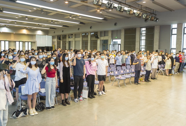 大会开始,全场同志齐唱国歌。黄云带领新党员进行入党宣誓,老党员一道重温入党誓词。