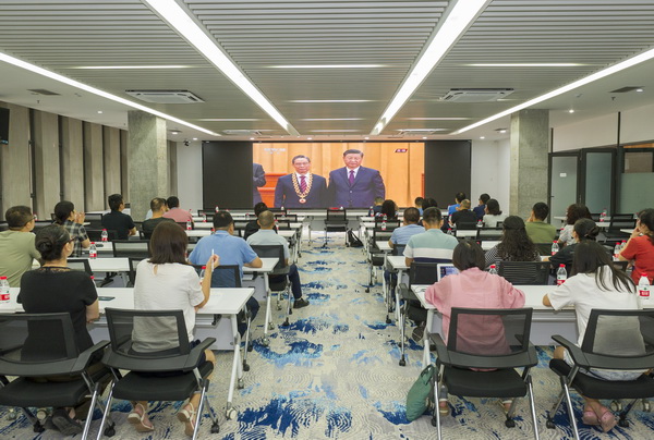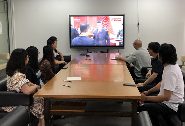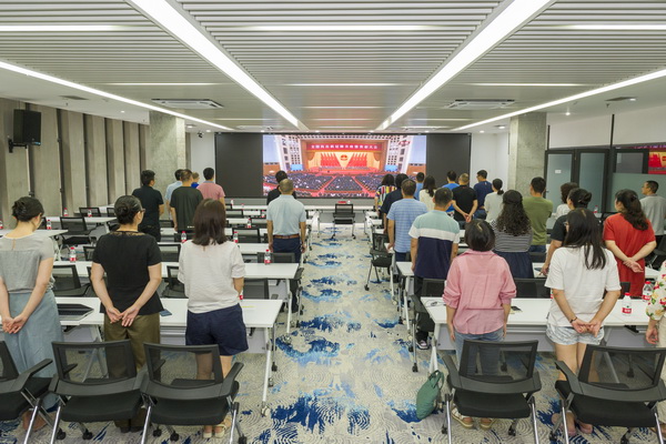上午10时,学校组织在家校领导和机关部门处级干部、科级干部在五会议室集中收看了大会直播。大家聚精会神收看直播,集体起立唱国歌,全体肃穆,向新冠肺炎疫情牺牲烈士和逝世同胞默哀,并认真记录下习近平总书记在大会上的讲话金句。全校各二级学院党总支和机关党委各支部也认真组织本单位教职工和部分学生收听收看了大会直播和有关报道。
