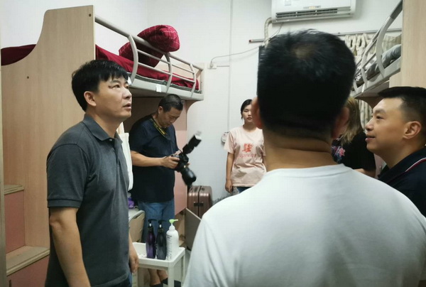 新生报到当晚,段胜峰副院长带领学生处、研究生处、保卫处、基建后勤处、国际交流与合作处、物业公司负责人以及各二级学院分管学生工作党总支书记、辅导员,走访了2020级新生宿舍,深入了解同学们到校后的住宿和生活情况,查看新生宿舍的环境、安全等。