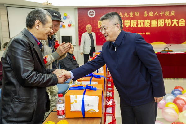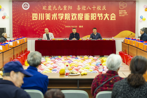 “赏菊登高祈长寿,人共菊花醉重阳”。10月23日上午,在重阳节和80周年校庆即将来临之际,学校在黄桷坪校区多功能厅隆重举行欢度重阳节大会。学校党委书记唐青阳,党委副书记左益,党委常委、副院长张杰和百余名老同志欢聚一堂,共庆佳节,共话发展。学校组织部、宣传部、党政办、发展规划处、人事处、国资财务处、离退休工作处等职能部门负责人参加了大会。大会由左益主持。