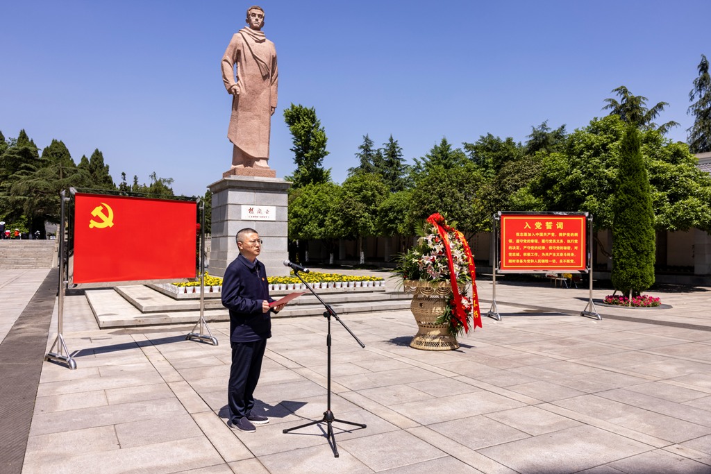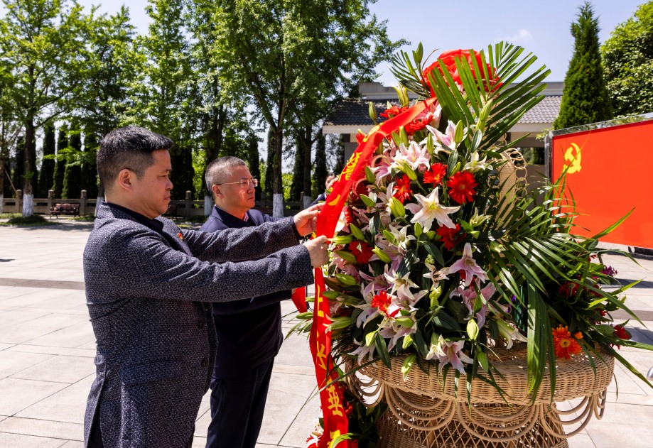 最后,全体党员满怀崇敬之情环闇公烈士墓凭吊瞻仰,为杨闇公烈士献上圣洁的菊花,寄托哀思。