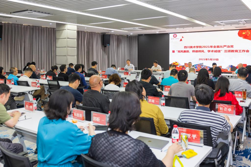 党委书记唐青阳在会上作了《2021年全面从严治党暨“党风廉政、师德师风、学术诚信”三项教育工作主题报告》。报告总结回顾了2020年学校全面从严治党工作,部署了2021年全面从严治党工作安排。