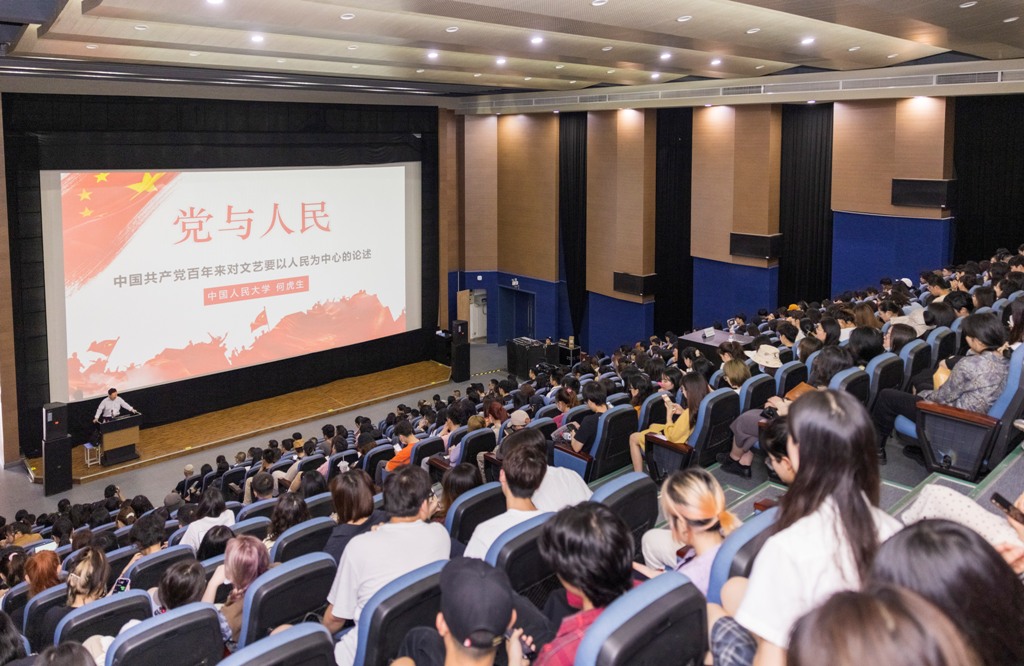 宣讲会上,何虎生教授以“党与人民”为主题,以中国共产党百年来对文艺要以人民为中心的论述为主要内容,为师生讲述了中国共产党百年来与人民紧密联系的真挚情怀。何虎生教授讲述了革命和建设时期毛泽东对文艺要以人民为中心的论述,改革开放时期邓小平、江泽民、胡锦涛对文艺要以人民为中心的论述,以及新时代习近平总书记对文艺要以人民为中心的论述,三个层面既一脉相承又与时俱进,是中国共产党真挚的人民情怀在文艺领域的深刻体现。