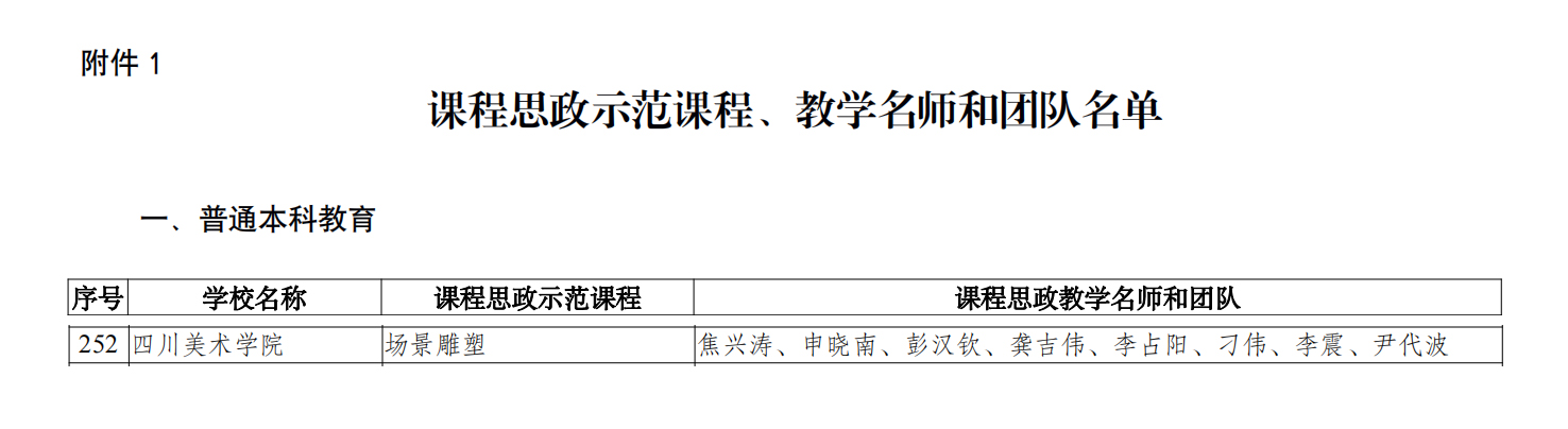 近日,教育部公布了课程思政示范项目名单,我校焦兴涛副校长领衔的“场景雕塑”课程及授课团队名列其中,同时入选普通本科教育国家级课程思政示范课程、课程思政教学名师和团队。