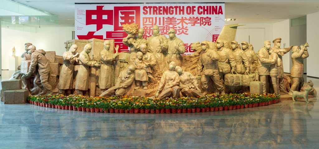 课程思政示范项目旨在坚持立德树人,发挥教师队伍“主力军”、课程建设“主阵地”、课堂教学“主渠道”作用,强化示范引领和资源共享。“场景雕塑”课程传承学校红色基因,准确把握育人目标,在深入人民、扎根生活的基础上确立创作主题、遴选创作内容。通过该课程教学,师生同作、同创、同展、同行,先后创作抗震救灾主题雕塑《万众一心》、抗疫主题群雕《冬去春来》、反映新时代的《幸福之路-全面小康》、庆祝建党100周年的《为新中国塑像》等群雕作品。