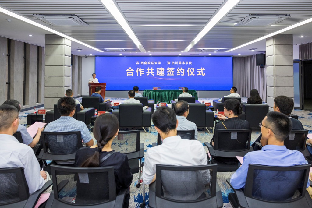 樊伟对两校合作协议的签署表示祝贺与欢迎。他表示,川美与西政的此次合作,一是顺势而为与趁势而上的需要。习近平总书记提出的总体国家安全观,文化安全是其中重要方面,教育部也在推行“新文科”建设,两校顺应教育发展大势,遵循教育发展规律,抓住机遇开展合作,是顺潮流而动的一件大好事,意义重大。二是学科交叉与学科融合的需要。川美因艺术而美誉天下,西政因法律而威震四方,两校合作是”长长联合、特特联合、优优联合、强强联合“,对于学科建设交叉融合将产生深远的影响。三是各美其美与美美与共的需要。 历史、现实和未来的地位都非常独特而重要,学科影响巨大而深远,西南政法大学的传统法律学科和新兴的国家安全学、知识产权法学、生态法学、监察法学、人工智能法学等学科都有着自身的特色和优势,培养造就了大批有影响力的人才,两校合作必将使各自特色更加彰显。希望两校合作顺利、早结硕果。