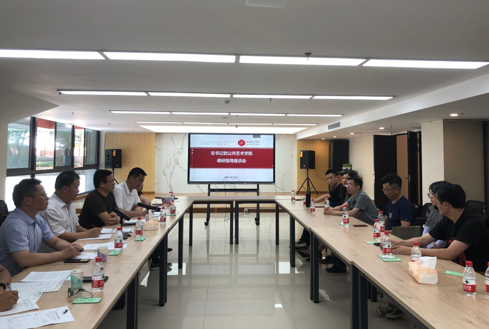 当日上午,左益副书记还对公共艺术学院进行了工作调研和指导。雍朝永、郭晏麟、郭小兵、魏婷、谭簧就2020-2021学年度下学期学院相关工作进行了总结汇报,提出了公共艺术学院的长远规划和设想。与会教师也纷纷发言,从人才培养、师资队伍、教育教学等方面提出了意见和建议。左益仔细聆听,与老师们亲切交谈、解答疑问,将学校对公共艺术学院的关怀传递给每一位老师。他指出,公共艺术学院把教育教学工作、校区治理工作及与九龙坡区政府的各项工作开展得颇有成效,值得充分肯定。对公共艺术学院今后的工作,左益提出三点希望:一要有大局意识,站在全校一盘棋的高度思考问题;二要根据自身的优势和特点扬长避短,做好顶层设计,办成一流专业、一流学科;三要高度重视并继续加强党史教育、“三项教育”工作,教师要以身作则,向学生传递正能量。
