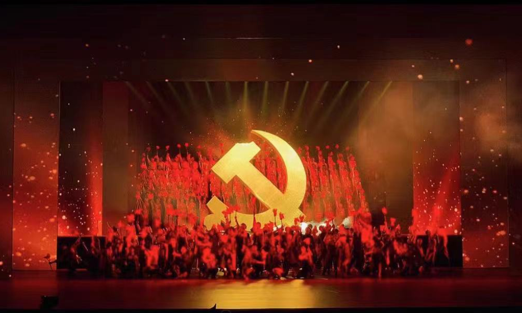 承担了本次重要文艺演出的舞台美术设计工程任务。主创团队勇于担当,积极奉献,在这一庆祝中国共产党百年华诞的重要活动中贡献了川美智慧和力量。学校高度重视此次设计工作,由党委副书记左益亲自牵头,影视动画学院党总支书记周小波带领影视动画学院学生党支部党员等团队工作人员,自去年开始投入设计,并持续进行方案整改和反复的细节推敲。