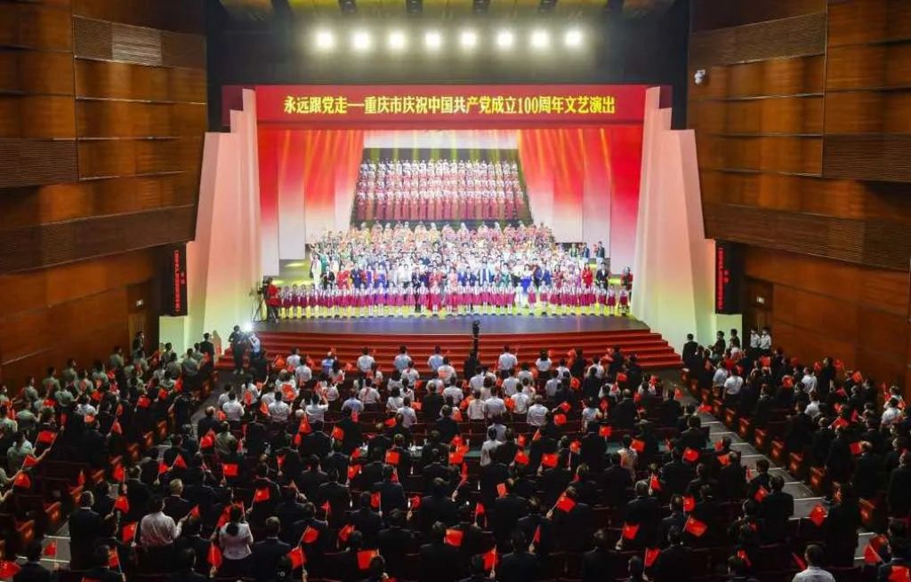 2021年6月28日,“永远跟党走——重庆市庆祝中国共产党成立100周年文艺演出”在重庆大剧院举行。市委书记陈敏尔,市委副书记、市长唐良智,市人大常委会主任张轩,市政协主席王炯等领导,与我市获得功勋荣誉表彰的代表,以及来自我市各行各业的党员和群众代表一起观看了演出,共同庆祝党的百年华诞。