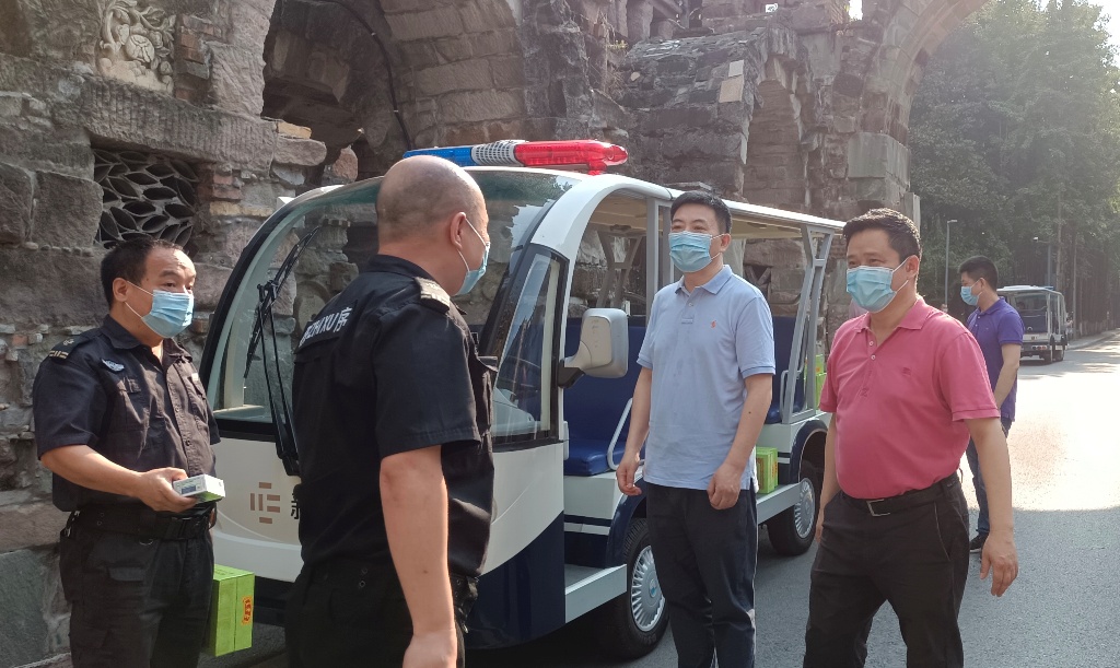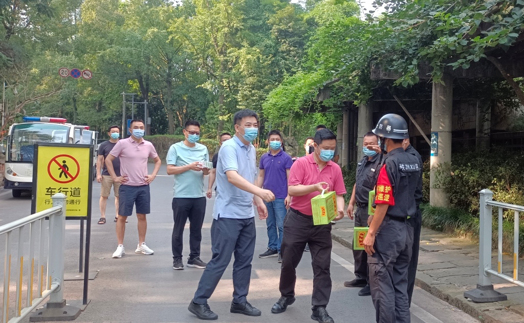 庞茂琨、段胜峰一行亲临门岗值班现场,为所有门岗值班人员送去了防暑消暑的慰问品,对他们在炎热酷暑的天气之下仍坚守岗位,为学校疫情防控工作始终站在第一线表达了感谢。