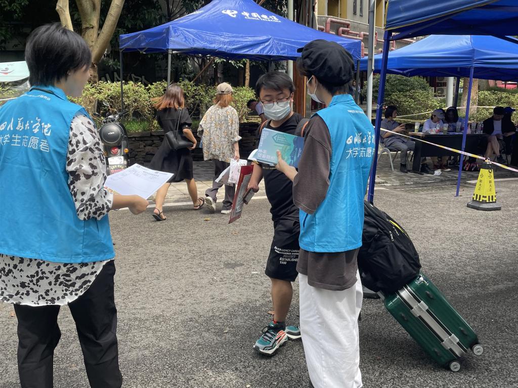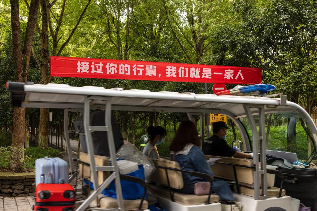 机关党委也轮流安排机关各部门工作人员、志愿者到迎新现场,协助查验健康码、行程码和核酸检测阴性证明,维持迎新现场秩序,与学生志愿者、物业员工一起,不论天晴下雨都坚持为新同学搬运行李等。