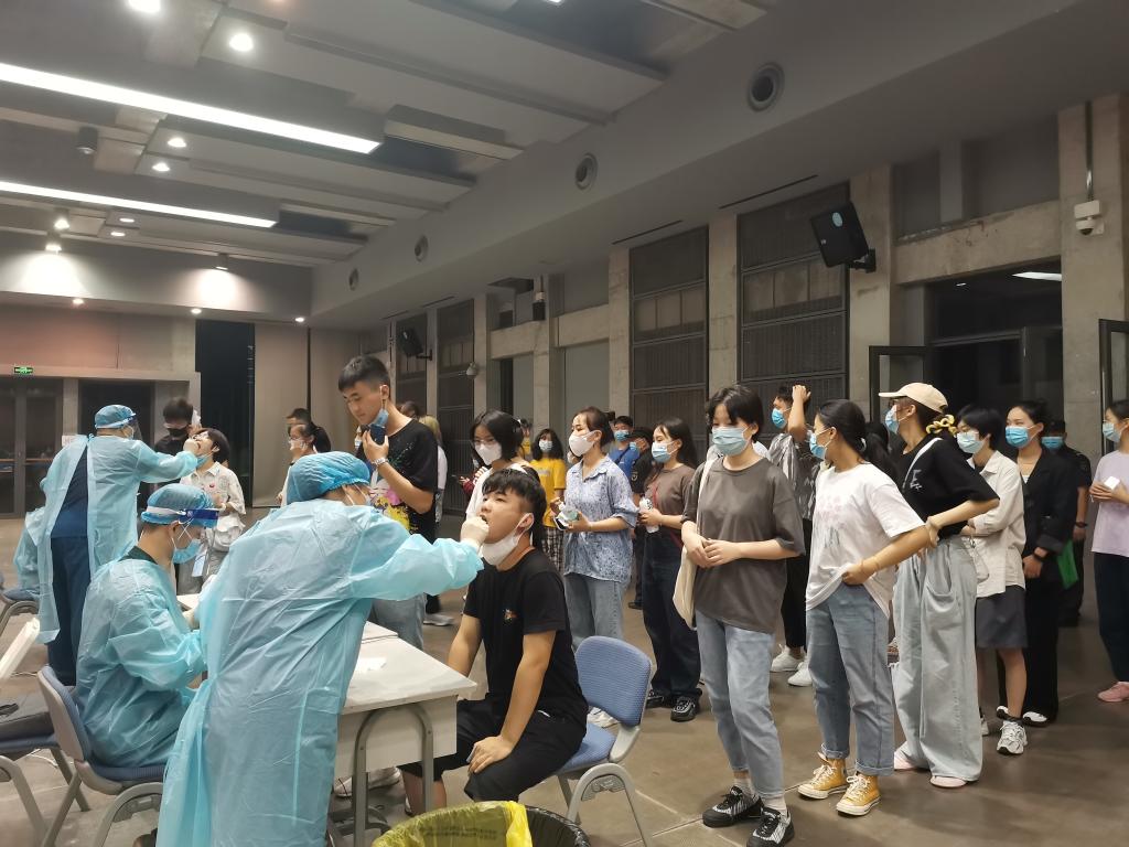 9月8日晚,学校在多功能厅组织了非渝籍新生的集中核酸检测,检测现场秩序井然,集中核酸检测工作顺利完成。