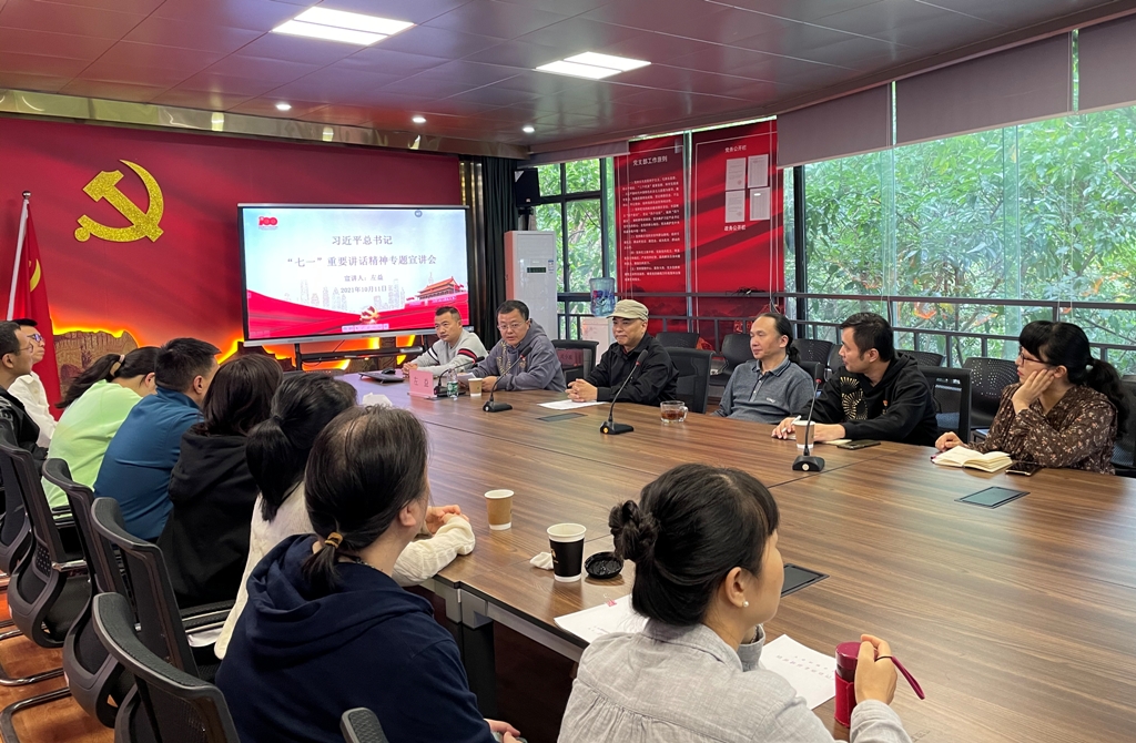 10月11日下午,学校党委副书记、学校党史学习教育校园宣讲队成员左益在影视动画学院党建活动室,为学院师生作了题为《学习贯彻习近平总书记“七一”重要讲话精神》的宣讲。影视动画学院全体教职工和学生代表参加了宣讲会。会议由学院党总支书记周小波主持。