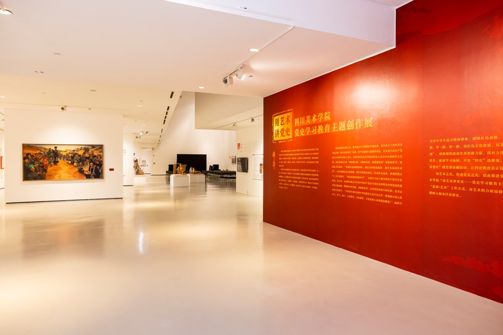 “返家乡讲党史”VLOG短视频展示;以画为体,以史为魂——讲述百年党史,传承红色基因思政课程展示。展览共展出绘画、雕塑、设计、水彩、书法、影像等作品500余件,充分展示了我校开展“用艺术讲党史”以来各个层面的主题创作成果。接下来一段时间,各基层党组织将把本次展览作为开展现场党史学习教育的重要阵地,组织师生党员前来参观学习。