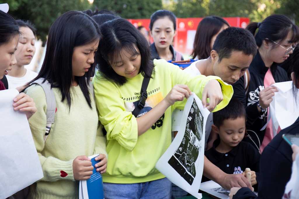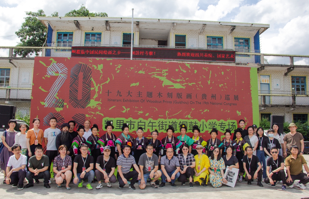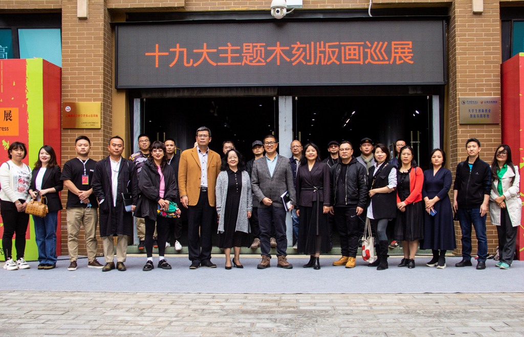 十九大主题木刻版画巡展是我校承担的国家艺术基金2019年度传播交流推广项目,巡展包括版画进农村、版画进社区、版画进学校三个板块。立项以来,项目组已先后组织主题木刻作品深入到重庆、四川、贵州、云南等省市开展基层巡展,用老百姓最熟悉的木刻版画形式,去宣传党的路线、方针、政策,以老百姓喜闻乐见的美术形式直观生动地把党的十九大精神和习近平新时代中国特色社会主义思想讲清楚、讲明白,让老百姓看得懂、能领会、可落实。