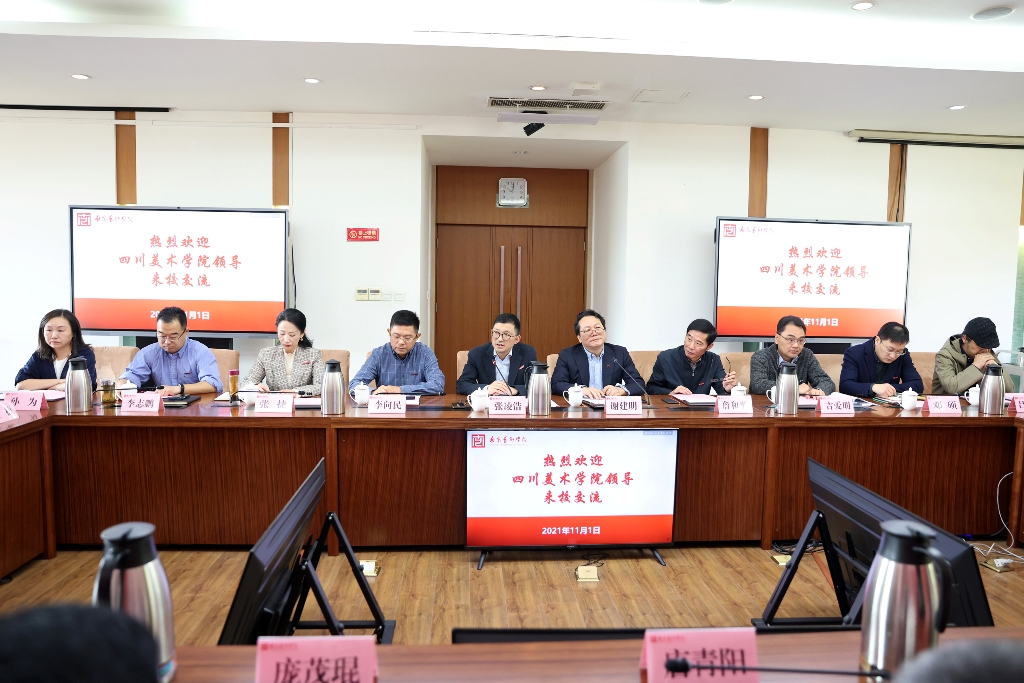 11月1日,学校党委书记唐青阳,党委副书记、院长庞茂琨,党委常委、副院长张杰,副院长段胜峰一行赴南京艺术学院调研。南京艺术学院院长张凌浩,党委副书记、副院长谢建明,副院长李向民,副院长詹和平,副院长张捷以及相关职能部门负责人参加座谈交流。