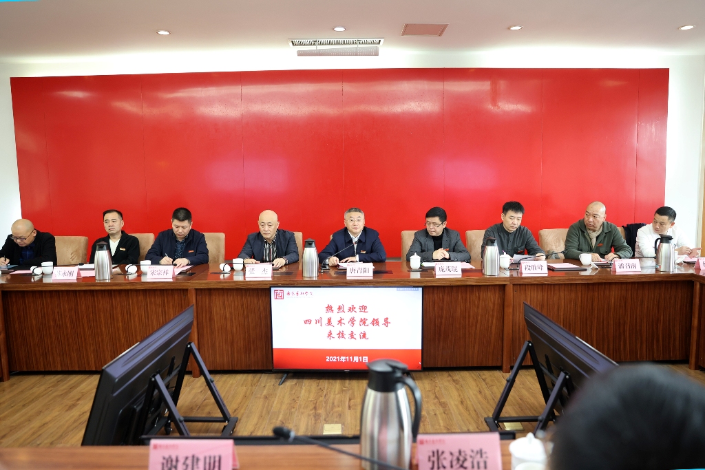 唐青阳、庞茂琨发表了热情洋溢的致辞,对南艺的热情接待表示感谢。川美此行是学习之行、交流之行。希望南艺能把先进的办学理念、高效的管理办法、科学的人才培养等方面经验毫无保留地传授给川美。