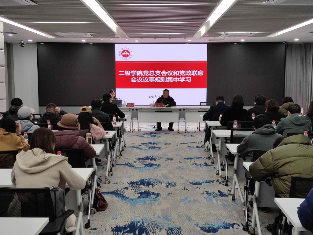 11月16日下午,学校组织了二级学院党总支会议议事规则和党政联席会议议事规则集中学习。党委副书记左益主持学习。各二级学院党政班子全体成员、党总支委员会全体成员、组织员,以及参与学校第一轮巡察的成员参加了学习。