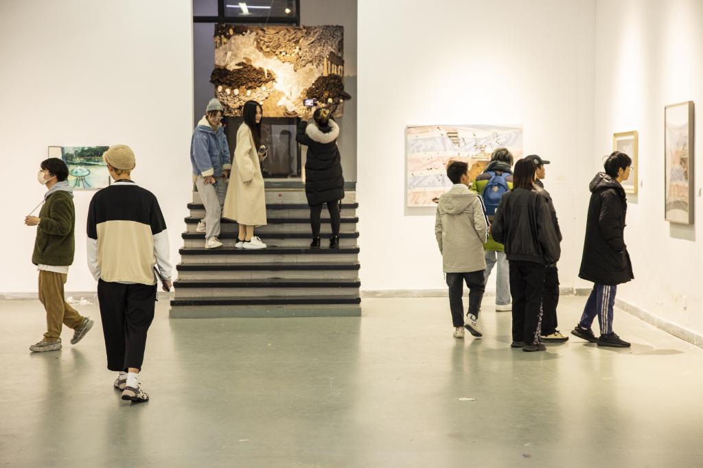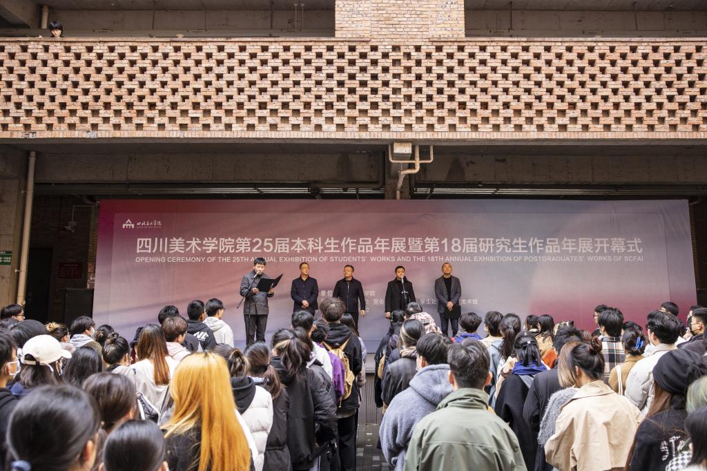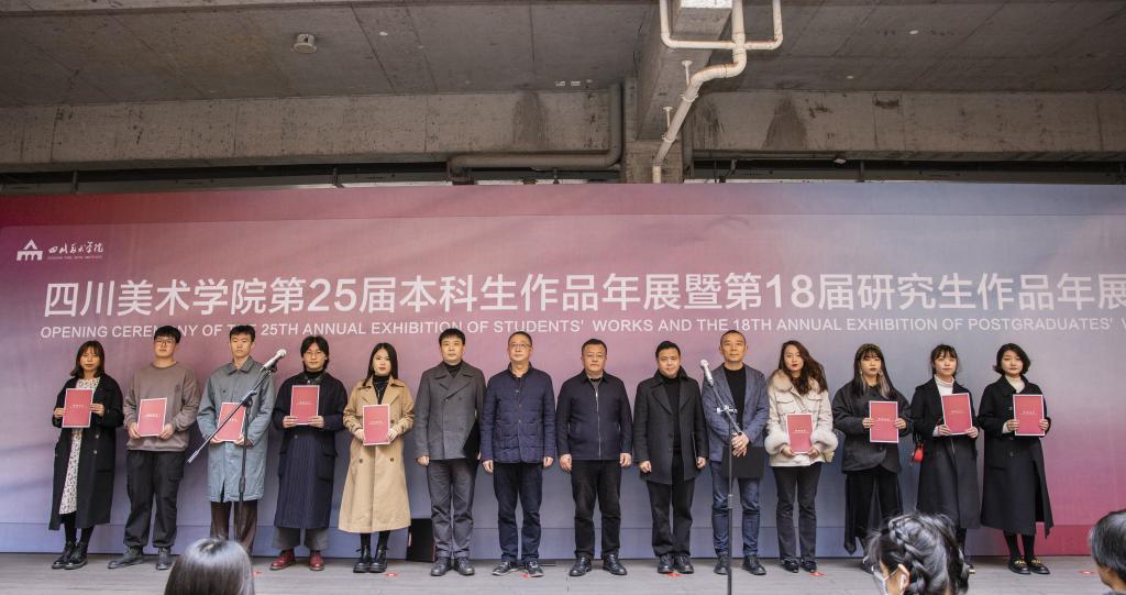 最后,庞茂琨宣布 第25届本科学生作品暨第18届研究生作品年展正式开幕。开幕式后,现场领导、师生一起参观了展览。