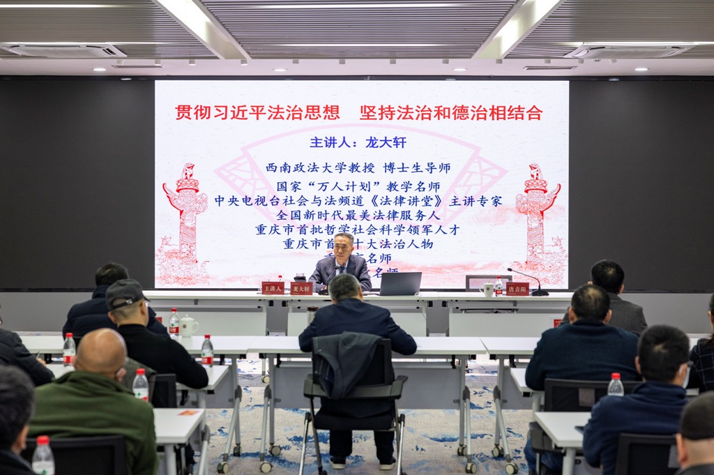 报告会上,龙大轩围绕习近平法治思想主题,从坚持法治和德治的历史发展脉络、历史与现实、理论与实践等角度,阐明了贯彻习近平法治思想、坚持法治和德治相结合的必然性、操作性和合理性,深刻指出了法治与德治相结合是历史发展的必然选择、是治国理政不可或缺的两翼,以及法治与德治相结合的文化基础。报告视野开阔、内容丰富、论述精辟、分析透彻,既有深入浅出的理论阐述,又有旁征博引的实证分析,进一步加深了我校广大党员干部对习近平法治思想的领会掌握,有助于指导党员干部准确把握习近平法治思想的核心要义和精神实质,进一步树牢法治意识,增强法治能力。