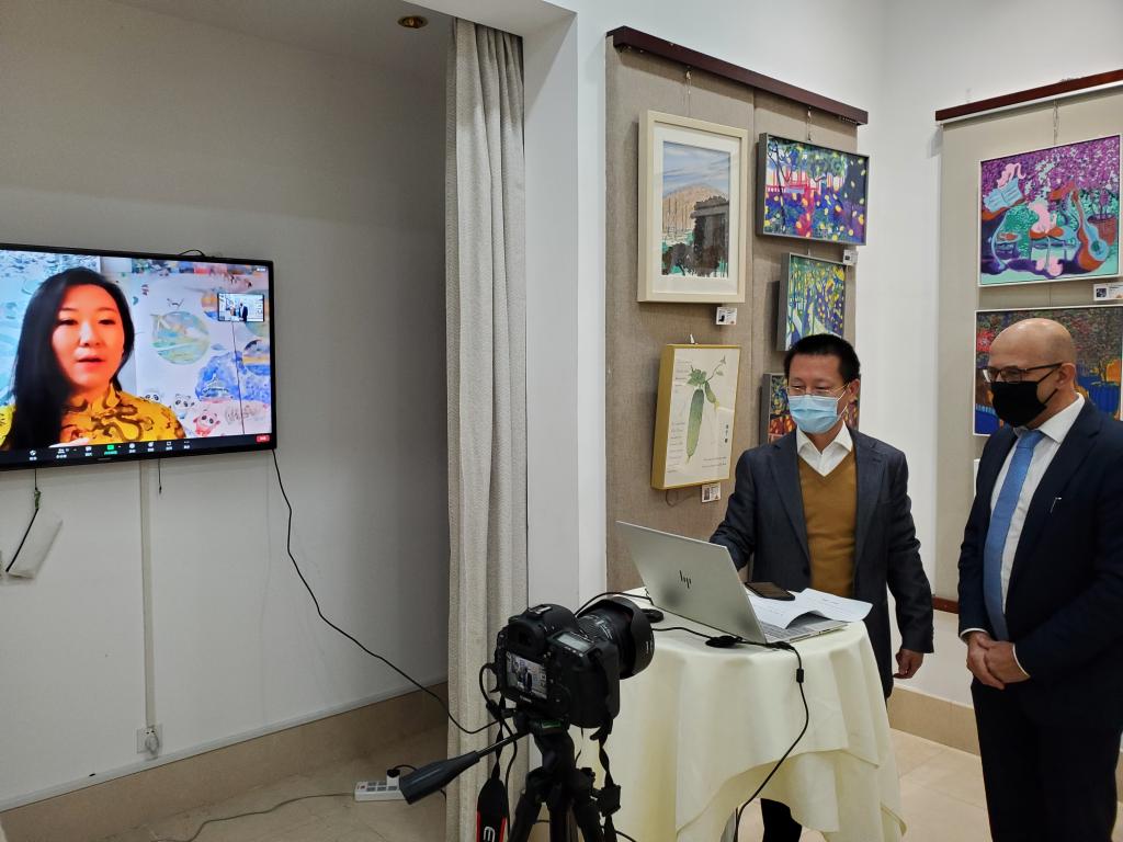 12月2日,由我校主持的2019年度国家艺术基金资助项目“百年颂共此时——点亮中欧”当代中国画艺术展在马耳他中国文化中心开幕。马耳他中国文化中心主任杨晓龙、马耳他艺术协会主席阿德里安·马莫(Adrian Mamo)与国内参与艺术家连线庆祝。中国美术家协会副主席、重庆市美术家协会主席、 院长庞茂琨,策展总顾问、北京大学教授丁宁发表视频讲话。策展人、 副教授张湸介绍策展情况。
