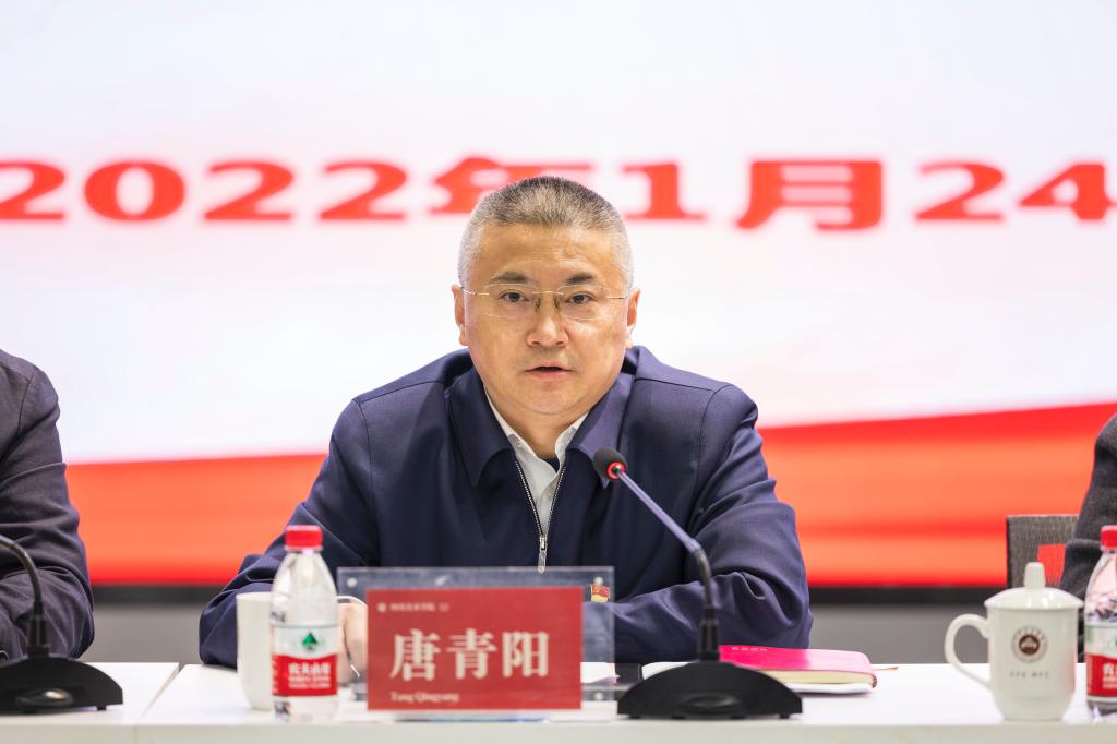 就做好2022年工作,唐青阳指出,一是要坚持全面从严治党;二是要做好干部人才工作;三是要继续抓好学科建设;四是要进一步提升人才培养质量;五是要进一步加强科研创作和社会服务;六是要做好大学生思想政治工作;七是要进一步推进学校治理体系和治理能力现代化。