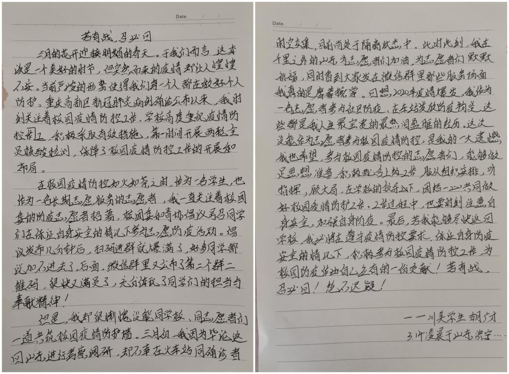 3月12日晚,校青年志愿者协会面向全体在校生发布了《关于征集 疫情防控大学生志愿者的通知》,通知一发出,新建的“川美疫情防控大学生志愿者征集”群在不到十分钟的时间就报满了两百人,很快二群也已满员,517名志愿者通过各种渠道踊跃报名,希望能够积极参与到疫情防控中,奉献自己的青春力量。校团委老师不禁发出朋友圈感叹“破防”,“老字号”志愿者胡广才同学虽人在外地,却心系川美的抗疫工作,看到老师发的“破防”朋友圈,他第一时间留言“若我在校定会报名,奈何在山东隔离中”。