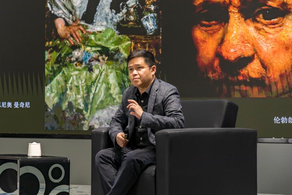 在庞茂琨看来,具象绘画在叙事与情境、表现与观念、风格与⽓质等方面,极具丰富性。他用⼤卫《拿破仑加冕》、库尔贝《画室》等名画举例称,在叙事与情境方面,从属于⽂学和故事的具象绘画,具有纪实性、叙事性特征,如古典主义绘画、现实主义绘画;情境交融的具象绘画,具有抒情性、情绪化特征,如巴洛克绘画、印象派绘画、象征主义绘画、浪漫主义绘画,超现实主义绘画以及中国传统⼭⽔画。在表现与观念上,表达内⼼情感的具象绘画,是对写实的反叛,如表现主义绘画,表现为内⼼的外化;表达⼼智或哲学观念的具象绘画,涵盖观念绘画(区别于概念艺术)、解构主义、跨界融合等,如马格利特、克洛斯等人的作品。
