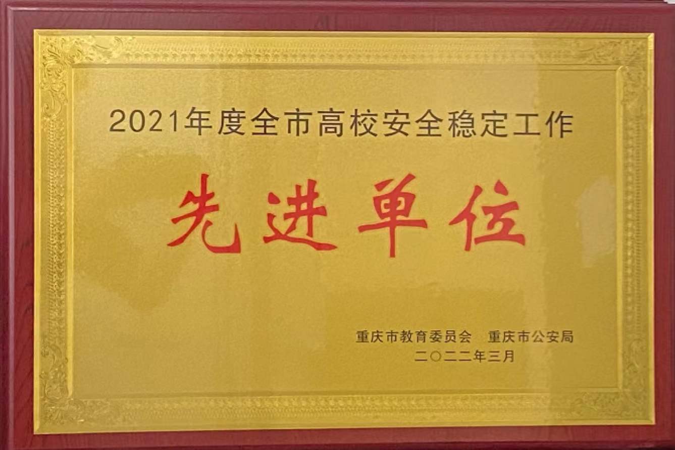 近日,重庆市教委、重庆市公安局对2021年度全市高校安全稳定工作成绩突出的单位和个人进行表彰。授予我校“2021年度全市高校安全稳定工作先进单位”荣誉称号,我校黄勤、宋宗祥、王世臣、顾柯四名同志获评“2021度安全稳定工作先进个人”。