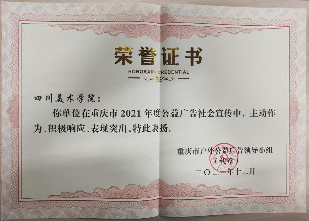近日,重庆市户外公益广告管理工作领导小组(中共重庆市委宣传部代章)下发《关于表扬在2021年期间积极参与社会宣传优秀单位的通报》,对包括我校在内的全市55家先进单位予以通报表扬。