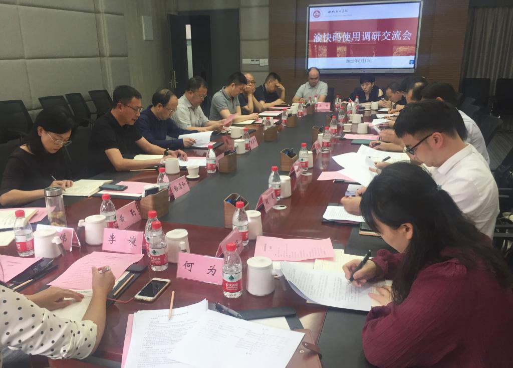 6月13日下午3点,市政府电子政务中心主任李宗磊、市教委政策法规处处长文像阳一行8人到我校,就“渝快码”使用进行了专题调研交流。调研交流会在虎溪校区二会议室召开。校党委副书记左益、副校长张勇华出席,党政办、党委宣传部、网络工作部、人事处、学生处、发展规划处、保卫处等相关部门负责人及工作人员参加了交流座谈。张勇华主持会议。