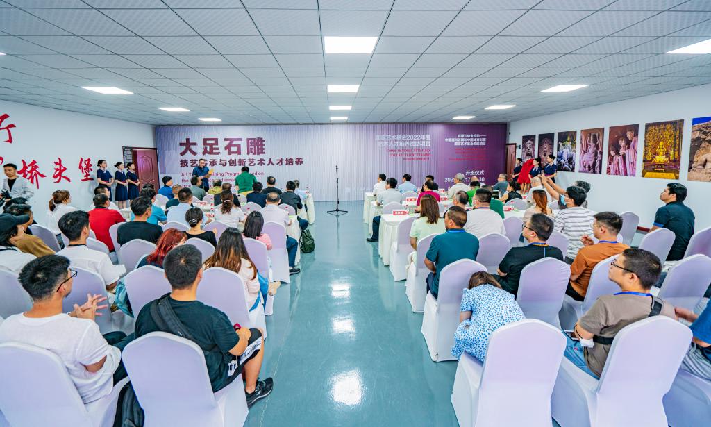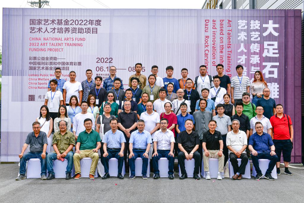 6月17日下午, 2022年国家艺术基金“大足石雕技艺传承与创新艺术人才培养”项目举行开班仪式。该项目由国家艺术基金立项资助, 主办,大足石刻文创园承办,大足石刻研究院协办。项目负责人由造型艺术学院雕塑系器物雕塑工作室主任娄金担任。