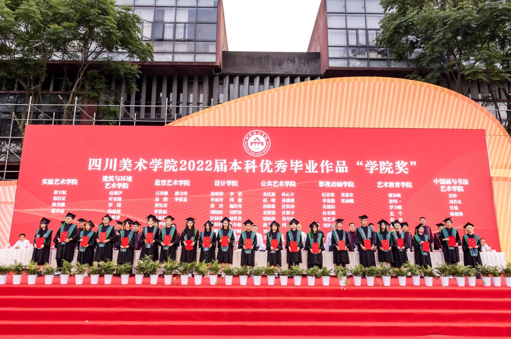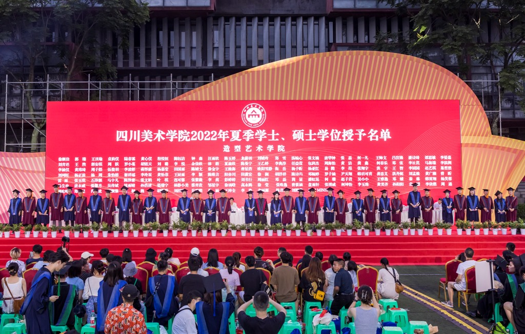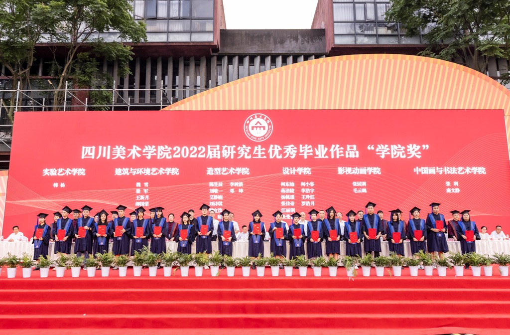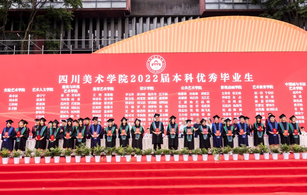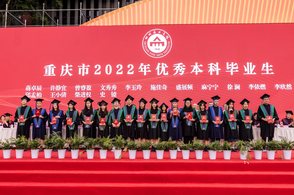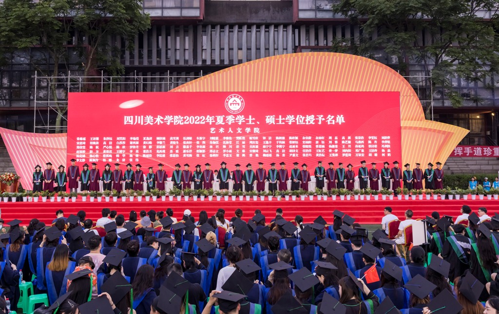 庞茂琨校长代表学校讲话,热烈祝贺2022届毕业生顺利完成学业,并向同学们的父母、向关爱和教诲同学们的老师致以最诚挚的谢意。在同学们即将背上行囊、开启新的人生旅程之际,作为校长、作为学长,也作为一名艺术工作者,他寄语毕业生们,明时方能通变,主动审视环境和察觉变化,才能把握时代脉搏,找准人生方位。明者因时而变,努力坚守初心而拥抱变化,才能在对未知的挑战中点亮人生的星光。在未来的人生道路上“拥抱变易,克服挑战;初心不变,坚守信仰;力求通变,追求卓越”,并热情拥抱变化,不怨天、不尤人,不放弃、不抛弃,以川美人的聪明才智贡献国家与民族,以川美人的担当创新服务社会与人民。