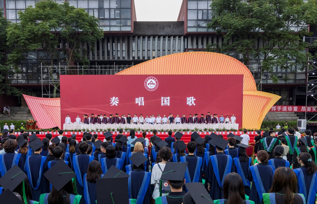 2022年6月25日晚, 2022届毕业典礼暨学位授予仪式在虎溪校区隆重举行。学校党委书记唐青阳,党委副书记、校长庞茂琨,党委副书记左益,副校长张杰,纪委书记黄云,副校长焦兴涛,副校长段胜峰,副校长张勇华出席典礼。唐青阳主持典礼暨学位授予仪式。学校学位评定委员会委员、全体中层领导干部、2022届全体毕业生、教师代表、毕业生家长代表和在校生代表参加了典礼暨仪式。