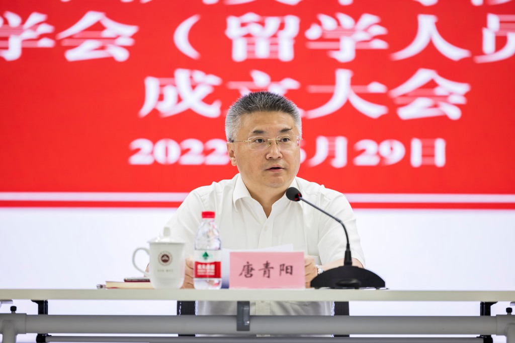唐青阳代表学校党委、行政对市委统战部领导长期以来对学校统战工作的关心、支持表示诚挚的感谢,向欧美同学会成立大会的顺利召开和新当选的班子成员表示热烈祝贺。他指出,在学校82年的办学历程中,留学归国人员是一支重要的力量。在即将迎来党的二十大、学校第三次党代会之际, 欧美同学会的成立,是学校进一步加强统一战线工作和留学人员工作的重要举措,也是学校重视留学人员群体、推动留学人员工作迈上新台阶的重要成果。他对学校首届欧美同学会的工作提出三点要求:一是提高政治站位,加强对留学人员的团结引领。 欧美同学会要深入学习领会习近平新时代中国特色社会主义思想,认真贯彻落实习近平有关留学人员工作、欧美同学会工作的重要讲话和指示精神,不断加深对“两个确立”决定性意义的认识,树牢“四个意识”、坚定“四个自信”、做到“两个维护”,始终在政治立场、政治方向、政治原则、政治道路上同以习近平同志为核心的党中央保持高度一致。二是弘扬报国传统,将实现个人价值与爱国兴校有机结合。欧美同学会要引导留学人员把爱国之情、强国之志、报国之行统一起来,在全面建设社会主义现代化国家新征程上,立足本职工作,发挥留学人员视野开阔、智力密集、联系广泛的独特优势,积极建言献策,积极服务地方经济社会发展,主动服务学校高质量发展。三是加强自身建设,增强欧美同学会的吸引力、凝聚力、影响力。欧美同学会要把有效发挥留学人员和欧美同学会作用作为履行职责使命的着眼点和着力点,加强自身建设,充分发挥人才聚集优势,为广大会员发挥作用创造条件、搭建舞台,激发会员的创新创造热情和拼搏奉献精神,不断开创留学报国事业新局面。