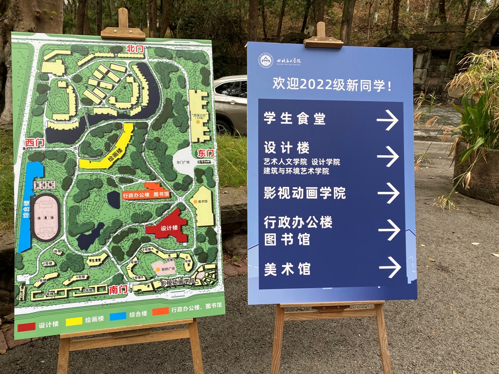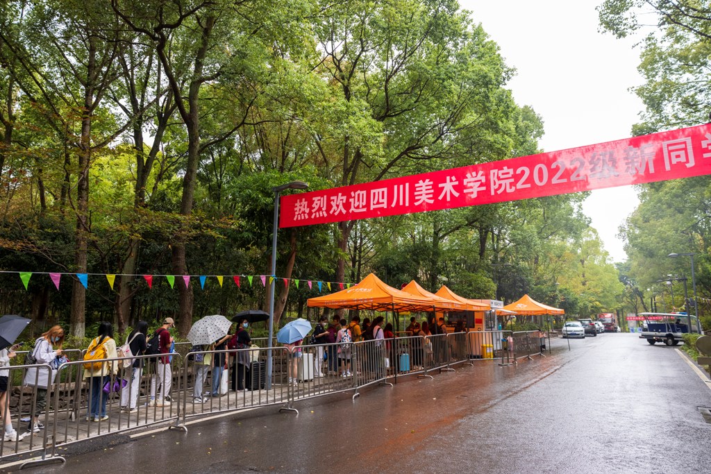 9月1日,2022级新同学们陆续来校报到。一进校门,温馨热烈氛围涌入眼前,校园各主干道迎接新生的标语横幅和彩色旗帜、学校地图和导视牌、手机里学校官方微信公众号推送的“2022级新同学,金秋川美欢迎你!”文章、“乐活川美”发布的“新生代表发言征集”等,热烈欢迎川美2022级新生的到来。