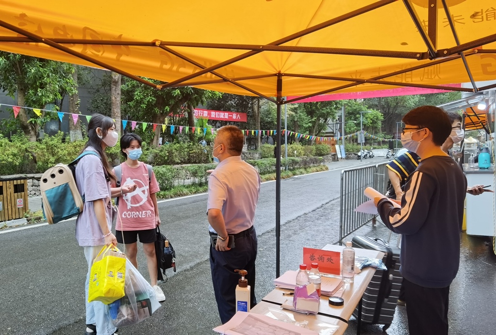 今年的新生报到与往年不同,为了严格遵守防疫相关政策要求,学校简化了报到流程,新生一进校立即进行核酸检测,做到“入校即检”。新生自行登录迎新网站注册报到。入校时,门卫核查健康码、行程卡、核酸检测报告等资料后,学生扫码进校,参加完核酸检测后入住学生寝室。