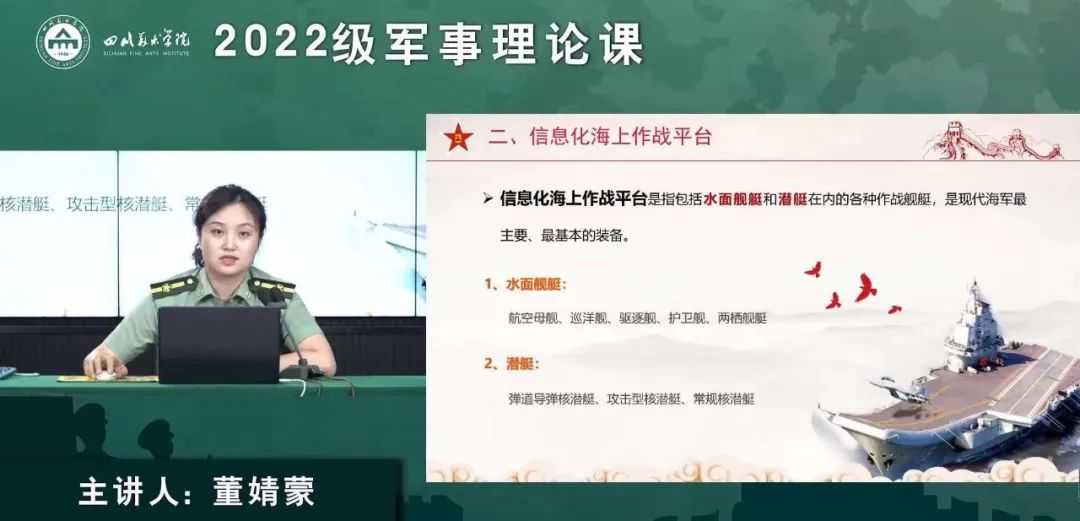 在学长学姐们与教师相聚云端课堂的同时,2022级本科新生也通过线上教学的方式进行了军事理论课的学习。学校依托网络平台,邀请军事专家开展线上直播,为新生开好进入大学的第一课,激励他们珍惜青春时光、提高综合素质、增强爱国报国本领,做到德技并修、知行合一。